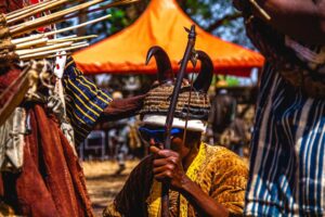 The festival begins with a grand durbar of chiefs, elders, and dignitaries, where the Sandem-Nab, paramount chief of the Builsa Traditional Area, sits in state to receive his people and visitors. Clad in colorful smocks and adorned with traditional regalia, chiefs from across Builsa gather to showcase the authority and unity of the land.