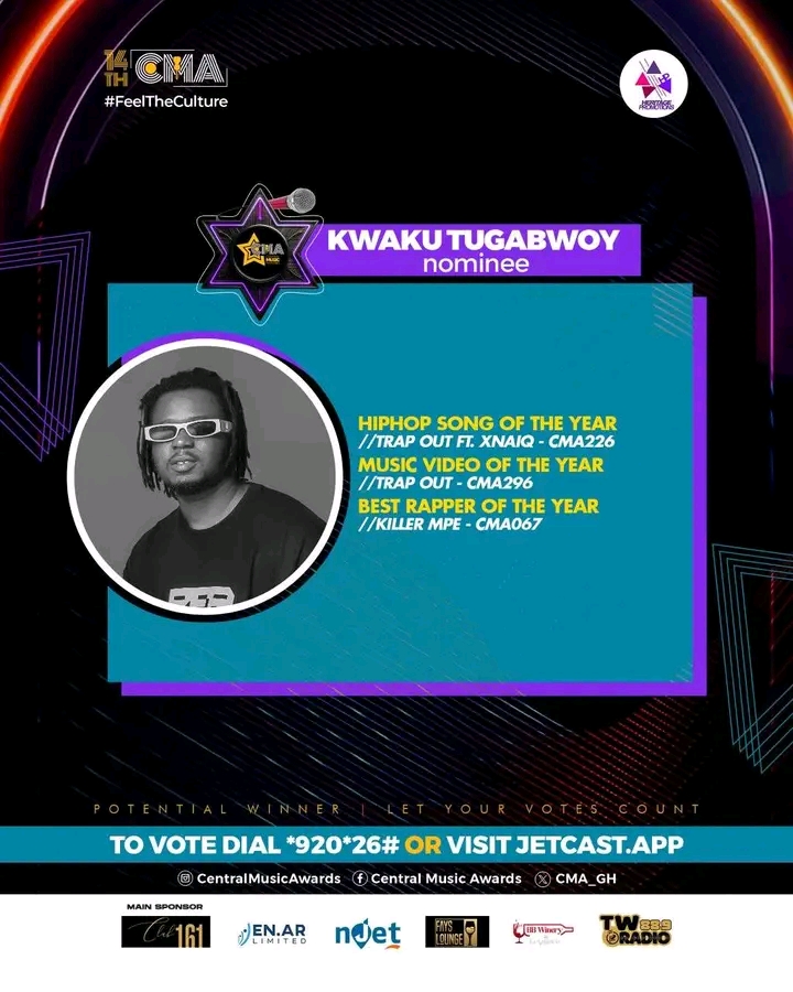 With these nominations, Kwaku Tugabwoy proves he is one of the most promising rap voices from the Central Region, and his story continues to inspire.