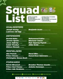 However, the squad will be without several key names, including Alexander Djiku, Thomas Partey, Jordan Ayew, Fatawu Issahaku, Joseph Paintsil, and Mohammed Kudus. The stars have withdrawn due to injuries or minor knocks, following joint agreements between the national team’s medical team and their respective clubs.